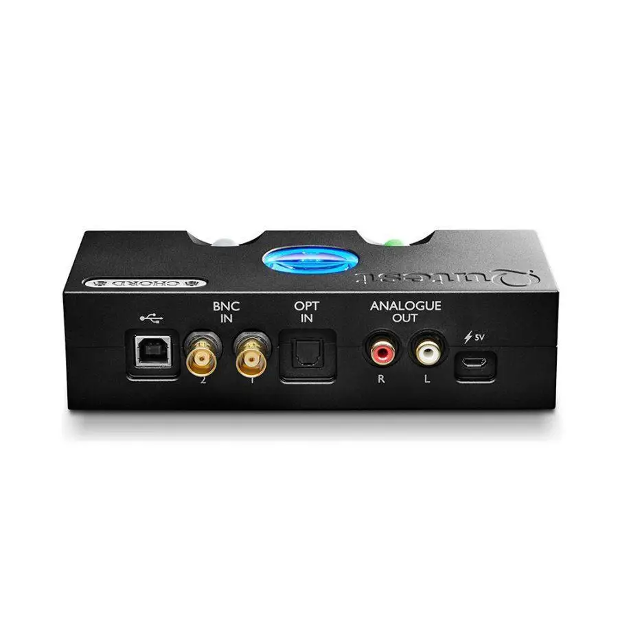 Wie alle Chord-DACs nutzt auch QUTEST einen FPGA-Chip mit selbst entwickelten Wandler-Algorithmen und dem einzigartigen WTA-Filter. Über den analogen Stereo-Cinch-Ausgang kann QUTEST an jeden Verstärker, Vorverstärker oder Kopfhörer-Verstärker angeschlossen werden; digitale Quellen können über USB, TOSLink oder S/PDIF (2x BNC mit Dual Data Mode) angeschlossen werden.
