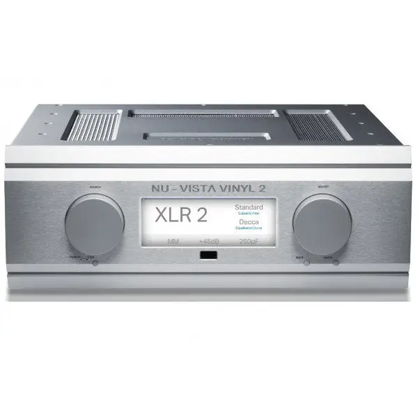 Die Audiosignale des Phonovorverstärker gehen an eine separate Platine für für jeden Kanal, mit einer voll symmetrischen diskreten Klasse-A-Nuvistor-Stufe. Das saubere PCB-Layout und das zweckmäßige Design garantieren niedrigste Rauschen und Verzerrungen bei niedriger Ausgangsimpedanz Ausgangsimpedanz. RCA- und XLR-Ausgänge haben jeweils Ausgänge haben ihre eigenen Stufen und können gleichzeitig nutzen. Der Nu-Vista Vinyl 2 verwendet die gleiche Display-Technologie und ein neu gestaltetes Frontplatte wie alle anderen Nu-Vista Geräte der letzten Produkte.