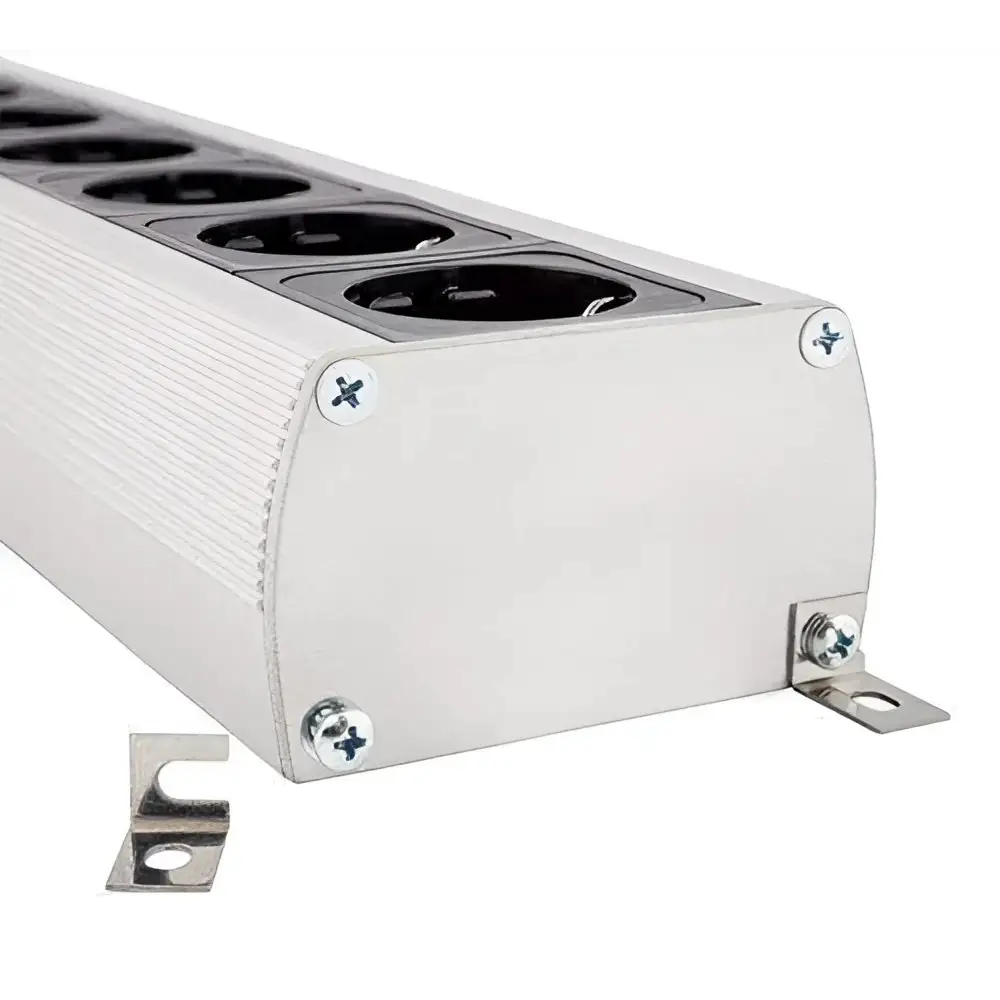 Die Steckdosenleiste ist durch ihr Aluminiumgehäuse vollständig gegen elektrische Felder abgeschirmt. Das leitende Gehäuse führt Interferenzen zur Erde ab.