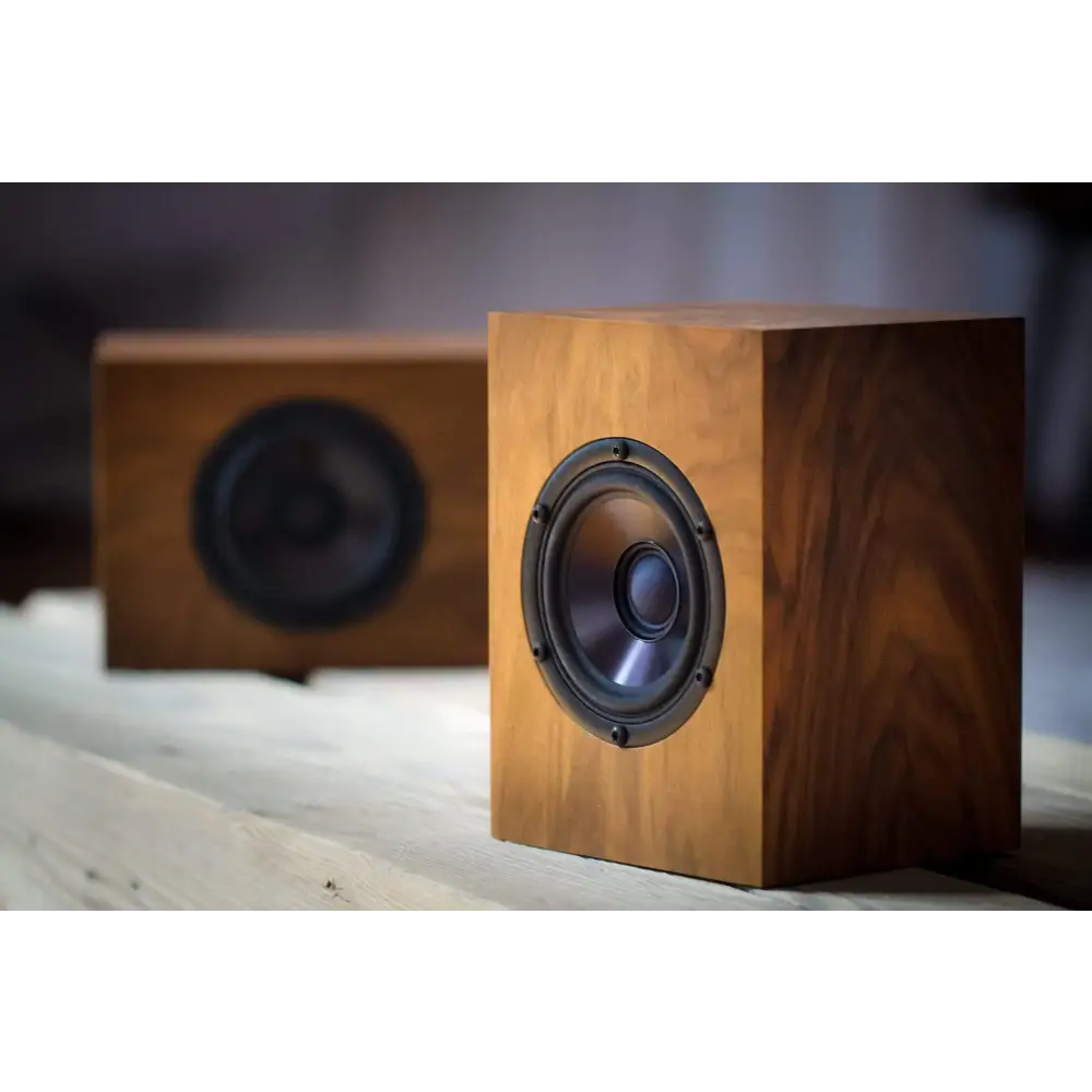 Beide sind in den Proportionen des goldenen Schnitts konstruiert und wie Ra setzt Sun auf einen Koaxial-Treiber zur Klangwiedergabe. Im Hochtonbereich bezaubert dort eine 2,54 mm Seidenkalotte, die Tieftönermembrane wird aus schwarz eloxiertem Aluminium gefertigt und liefert mit seinen 12 cm Durchmesser auch fast so tiefe Bässe wie Ra – auch wenn unser Baby in dieser Stimmlage natürlich nicht ganz so laut tönt wie der große Bruder …